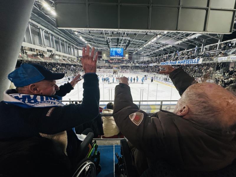 Dans le cadre de la dynamique autour des Jeux Olympiques d’hiver, notre résidence a organisé hier une sortie exceptionnelle pour quelques résidents : assister à un match de hockey sur glace au Palais Omnisports de Marseille !